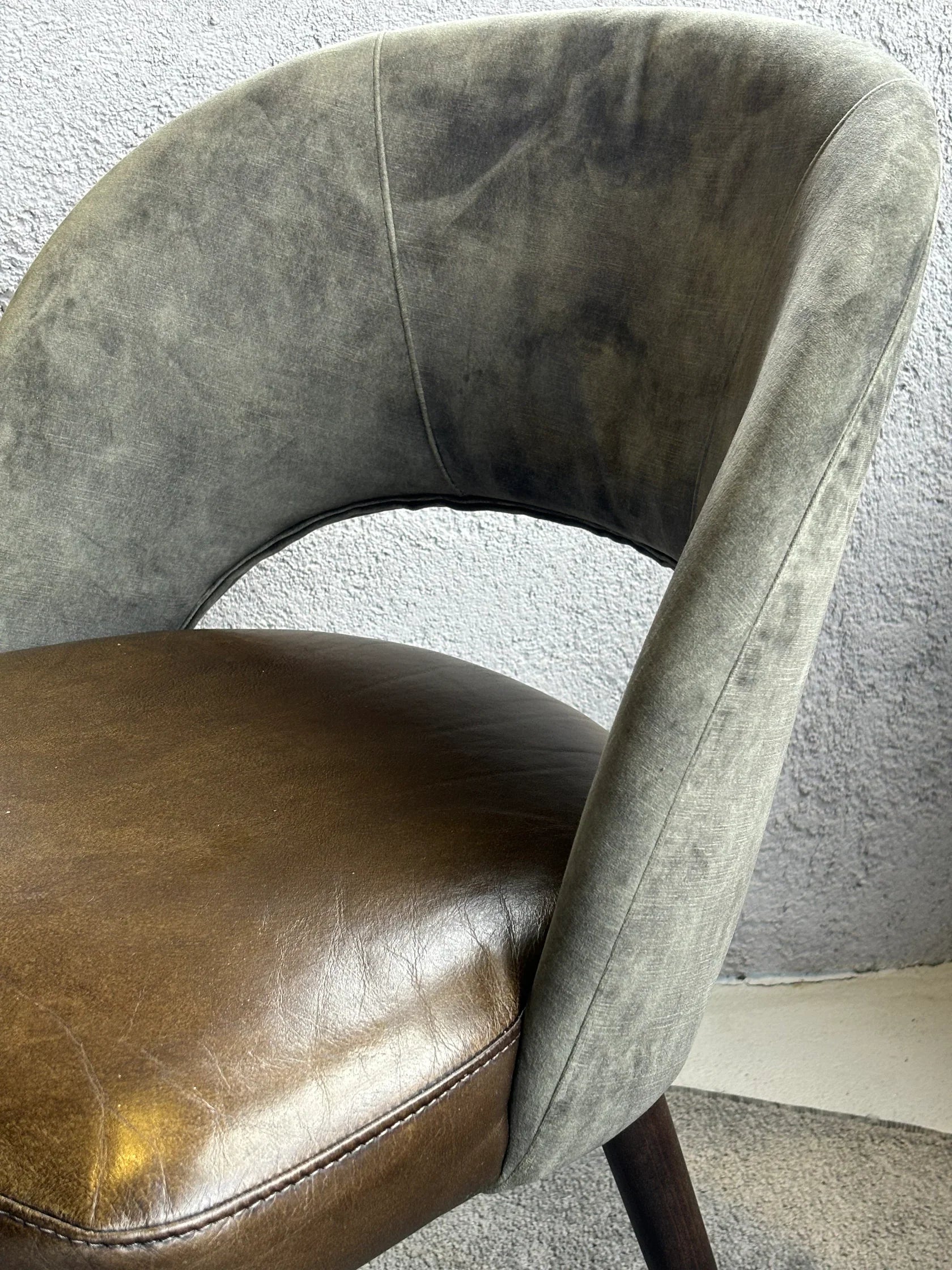 Combinația materialelor premium adaugă un contrast vizual plăcut și o senzație unică de confort. Textura caldă a lemnului și aspectul luxuriant al catifelei transformă scaunul Dex într-o piesă centrală a oricărui decor.